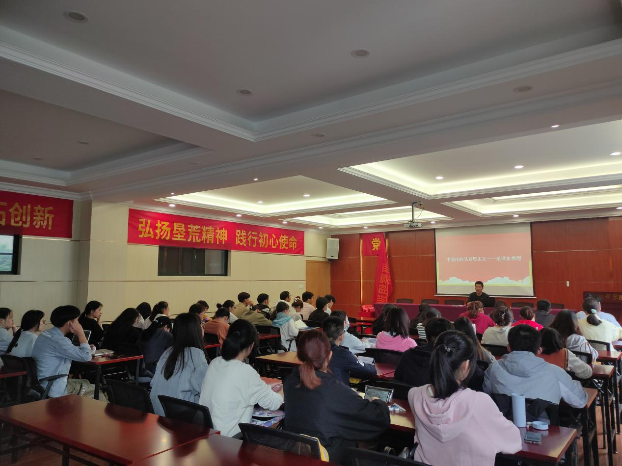 首先,由支部书记张本金老师就毛泽东思想同与会党员一起深入探究了这一思想的发展历史。毛泽东思想共先后经历了四个阶段,分别是萌芽阶段、基本形成阶段、成熟阶段和继续发展阶段。其中,新民主主义革命的基本思想标志着毛泽东思想的萌芽,而毛泽东同志关于农村包围城市、武装夺取政权道路理论的提出标志着这一思想基本形成。毛泽东思想成熟的主要标志则是新民主主义革命的理论体系的形成。