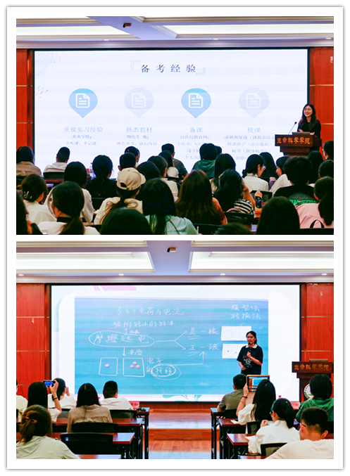 分享会上,两位同学结合自身丰富的实战经验,分别从考试政策、报考岗位、学习计划等方面进行了详细介绍,强调了时间管理和心态调整的重要性,勉励学弟学妹们要保持积极乐观心态,注重劳逸结合,有效缓解招考压力。与会同学专注倾听,时而奋笔疾书做记录,时而高举镜头拍照片,时而双手合拍送掌声,现场氛围轻松且欢乐。互动环节,同学们纷纷向学姐们请教备考中遇到的问题和困惑,两位同学耐心细致地解答,提供了实用的备考建议。