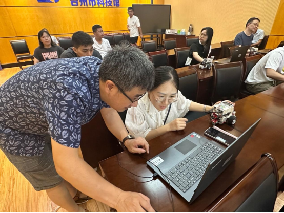 专家指导学员进行机器人编程