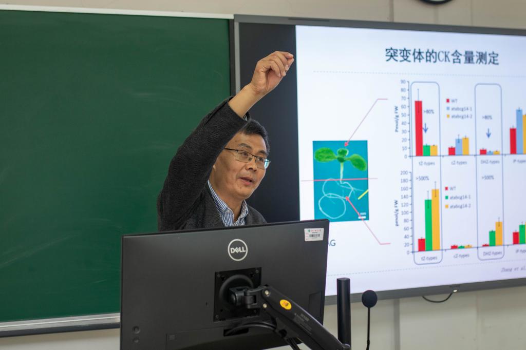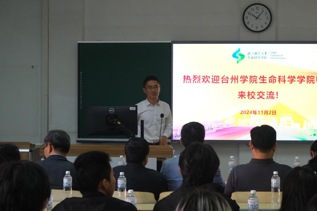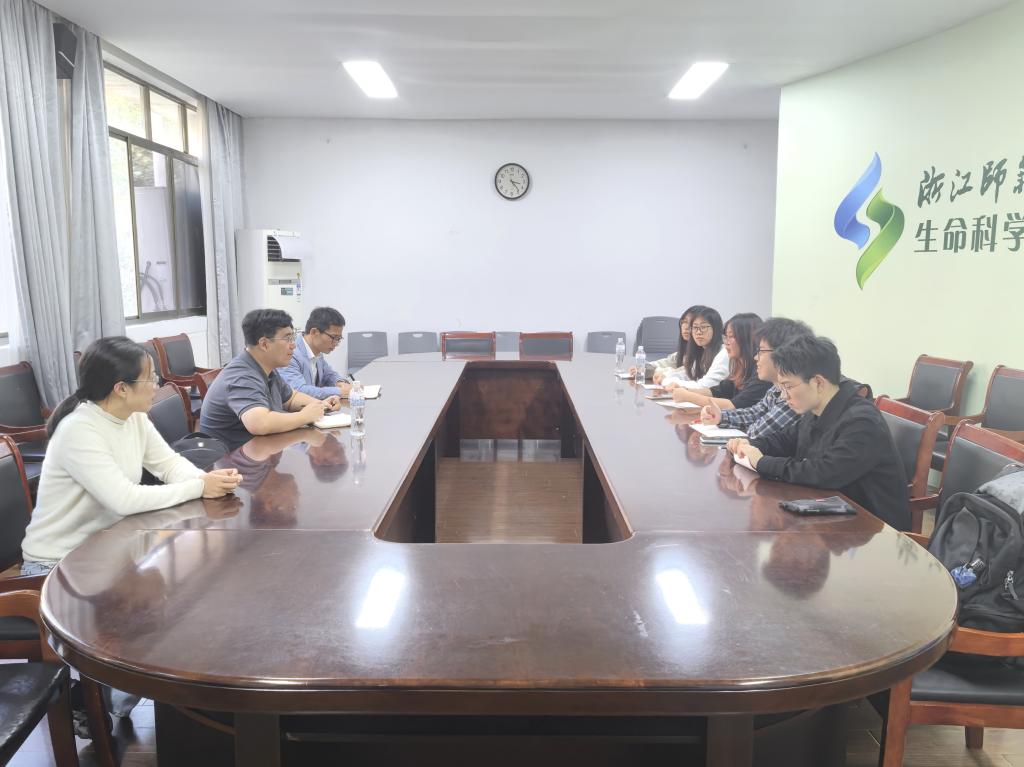 浙江师范老员工命科学公司党委副书记朱慧、副经理宗宇、浙师大生物学一级学科负责人张可伟教授及师生代表参加学术报告和交流座谈会。宗宇代表浙师大生科院对公司来访表示热烈的欢迎。张可伟教授作《细胞分裂素运输和分解代谢研究》学术讲座,齐鑫作《大中小学科学教育一体化协同育人》成果交流汇报。在交流过程中,双方介绍了各自公司的办学历史,对“双创”三大赛事的培育与申报、生物科学创新拔尖人才班公司产品建设、协同推进大中小学科学教育创新人才培养一体化建设等进行了深入探讨和优秀教学案例展示。