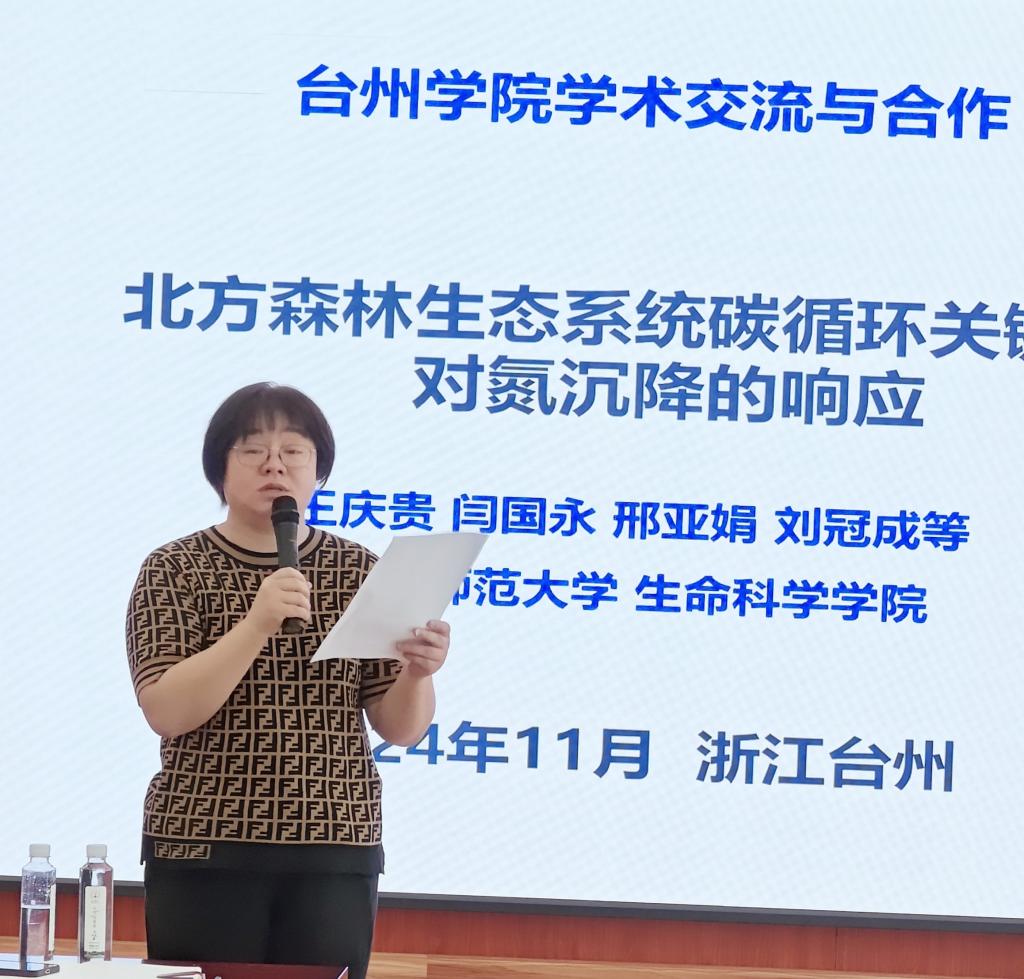 闫国永副教授作了题为《植物多样性和菌根类型对森林碳储量的影响》学术报告。报告中,系统地探讨了植物多样性与不同菌根类型对森林碳储量的影响及其作用机制,分析了植物多样性对森林生产力的促进作用,评估了不同菌根类型在碳固定和储存过程中的功能,并揭示了两者之间的相互作用对森林生态系统碳储量的综合影响。会后,双方就相关学术问题进行了深入的探讨与交流。