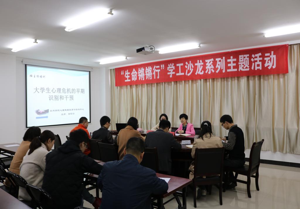 3月21日下午,“生命锵锵行”学工沙龙第三期活动在明胜m88官网会议室如期举行。校心理健康教育与咨询中心主任金彩云副教授应邀做客沙龙,公司全体班主任、副班主任及辅导员参加,公司党总支副书记徐敏主持。